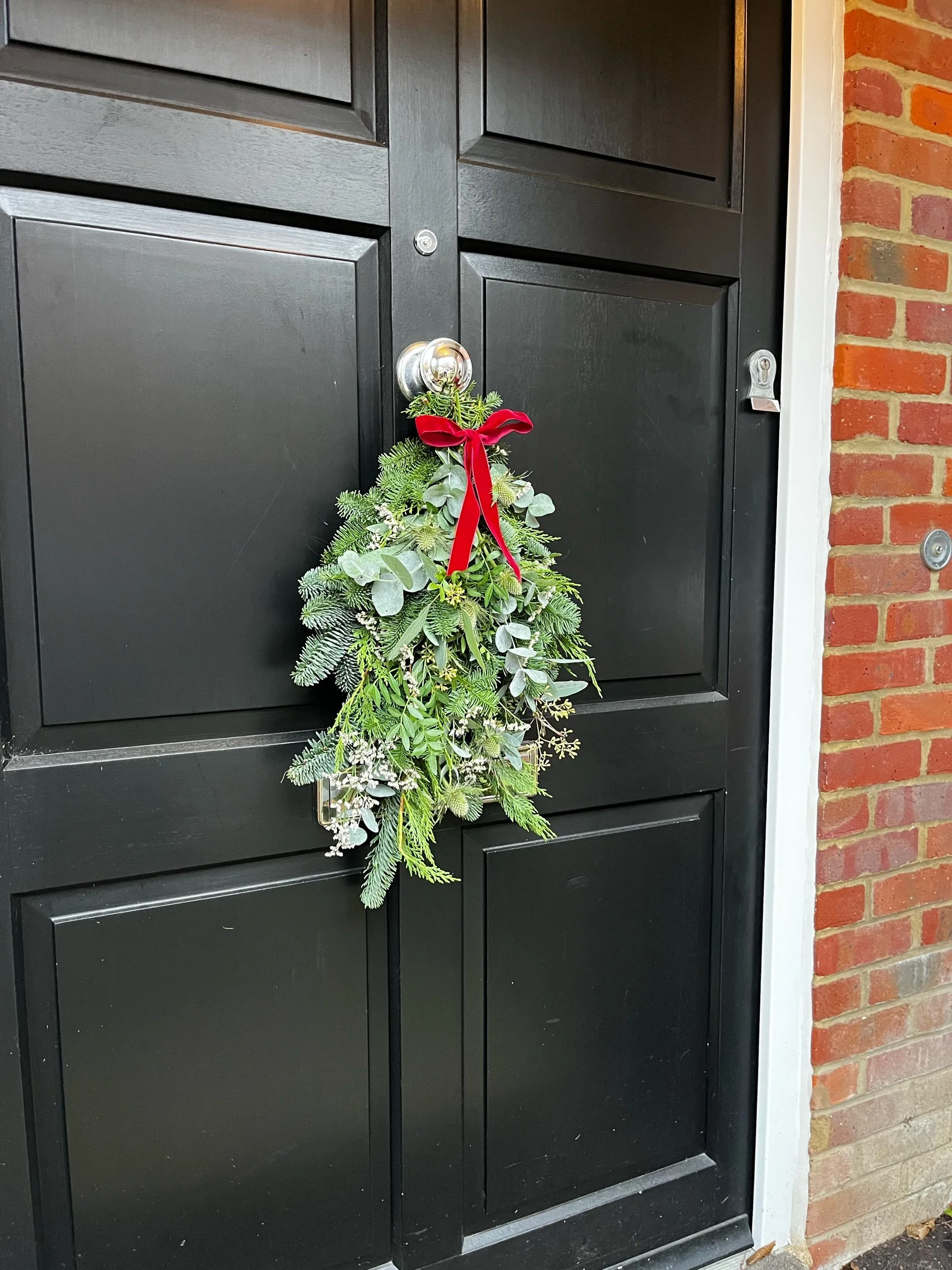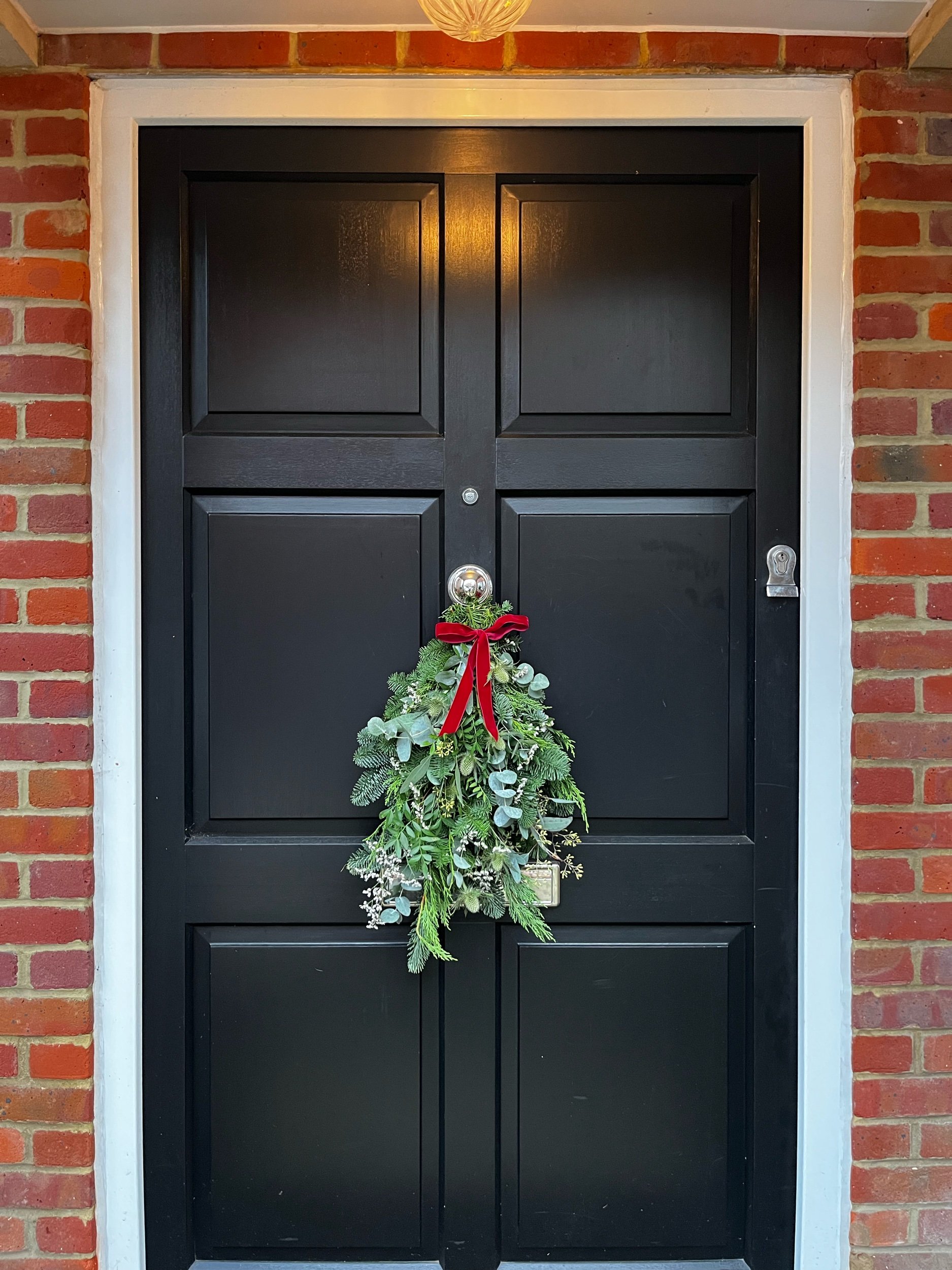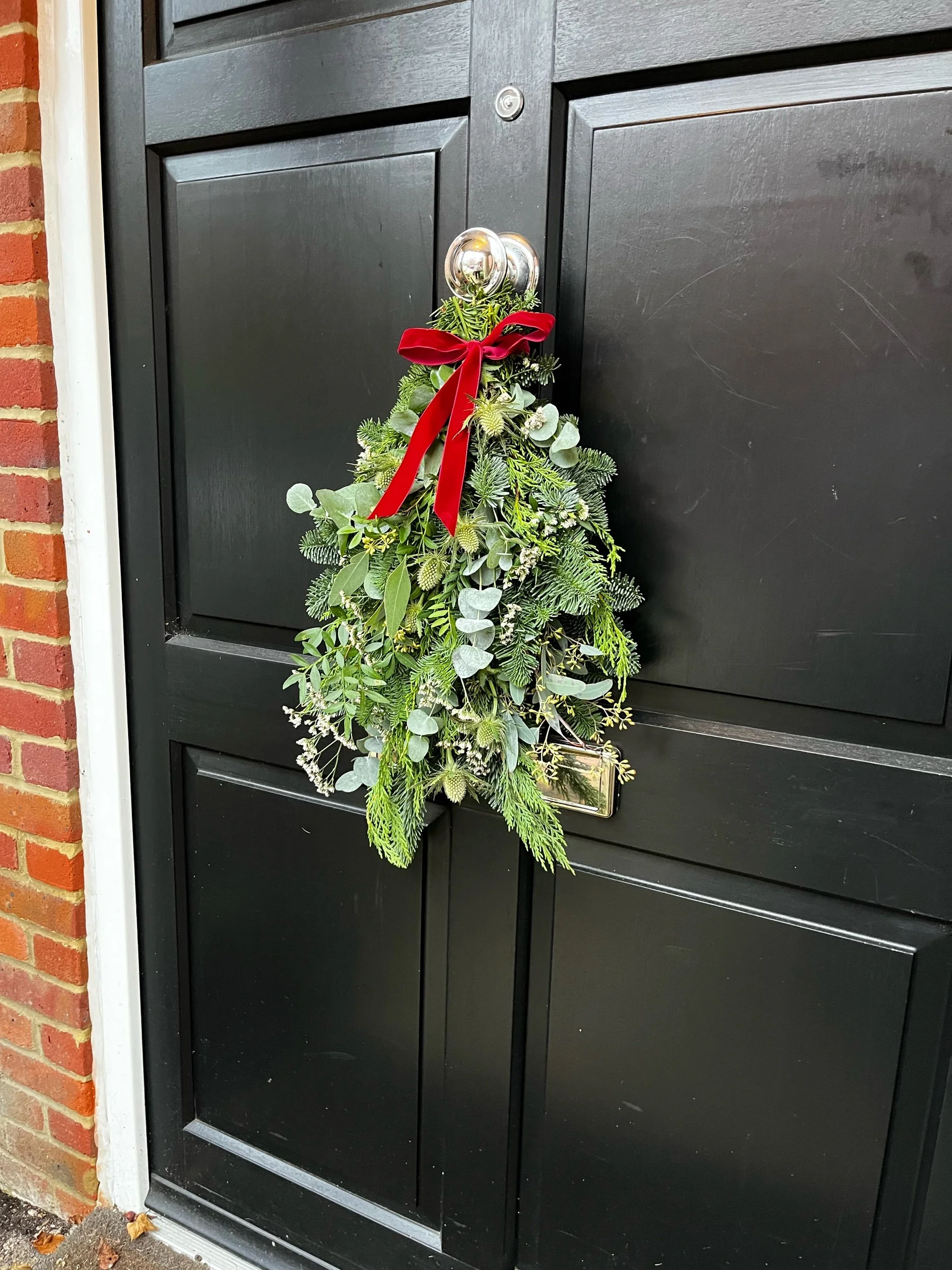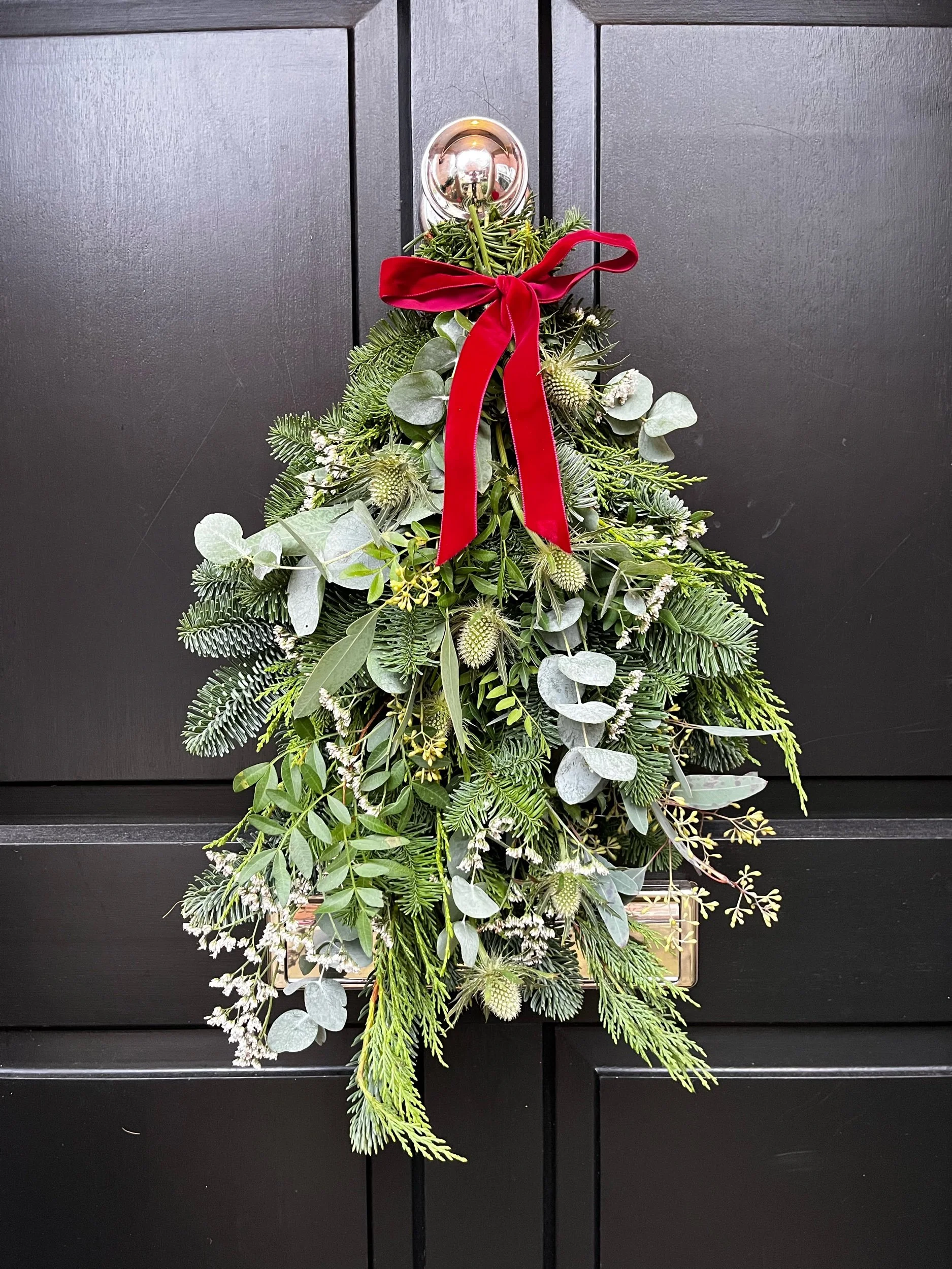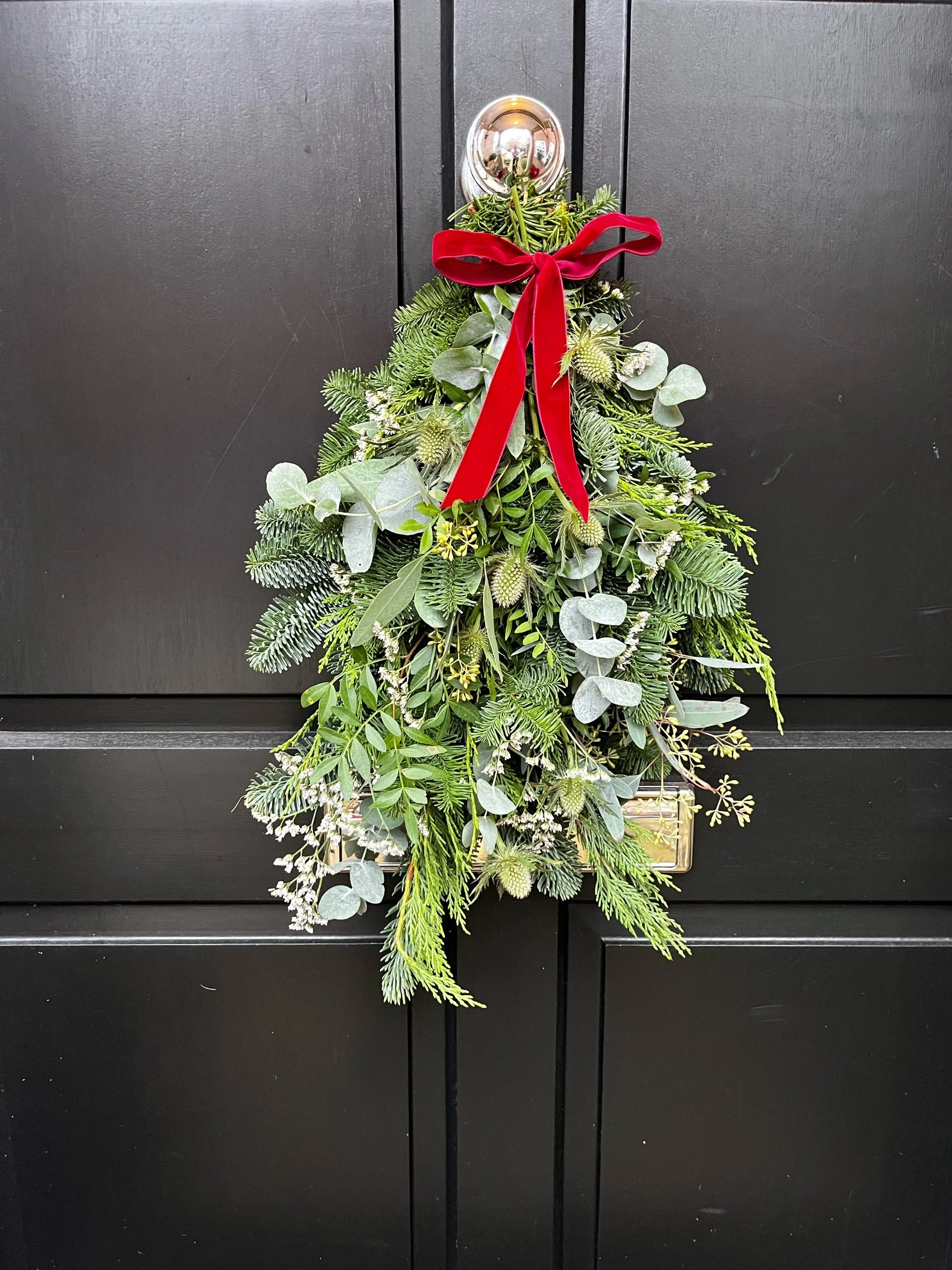 Decorate your front door this Christmas with The Secret Garden’s effortlessly elegant swag. The swag is decorated with different greeneries and thistles creating a very clean look.
